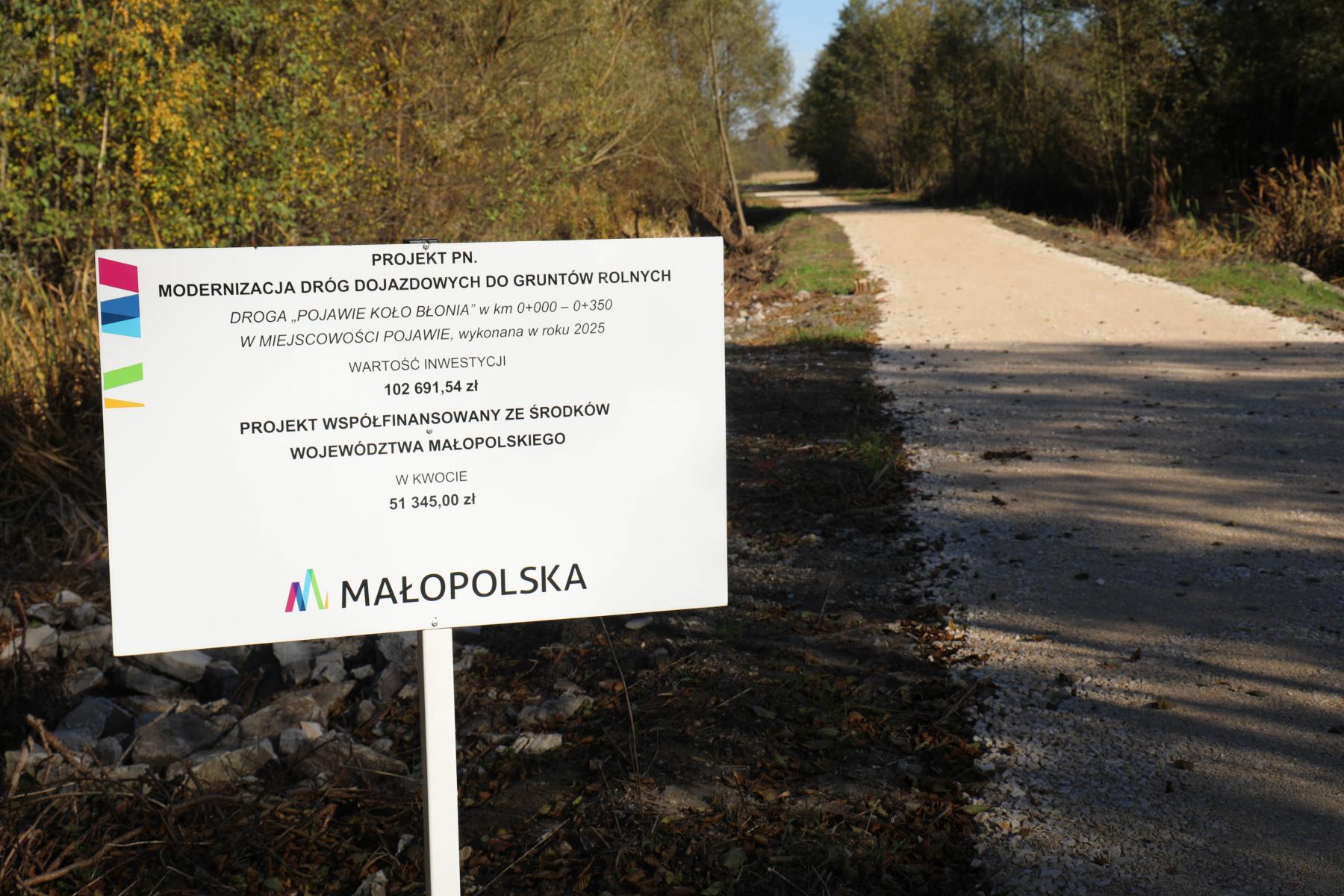 - remont drogi dojazdowej do pól: Pojawie koło Błonia na działkach nr 335/8 i 21 w miejscowości Pojawie dł. 350m,