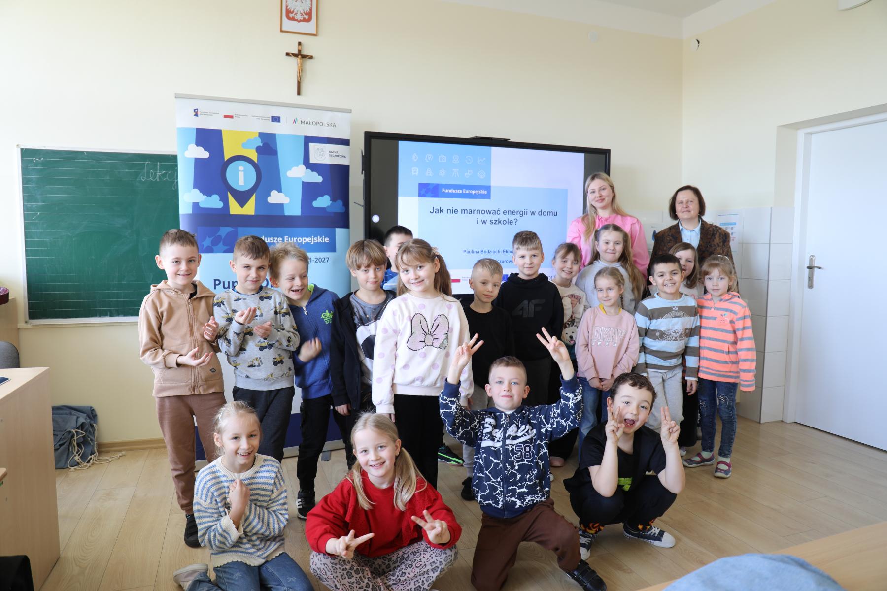 W dniach 26 i 27 lutego 2026 roku- Ekodoradca Gminy Szczurowa Paulina Bodzioch spotkała się z uczniami Publicznej Szkoły Podstawowej im. Tadeusza Kościuszki w Strzelcach Wielkich w ramach projektu „Wdrażanie Programu Ochrony Powietrza Fundusze Europejskie dla Małopolski 2021-2027”