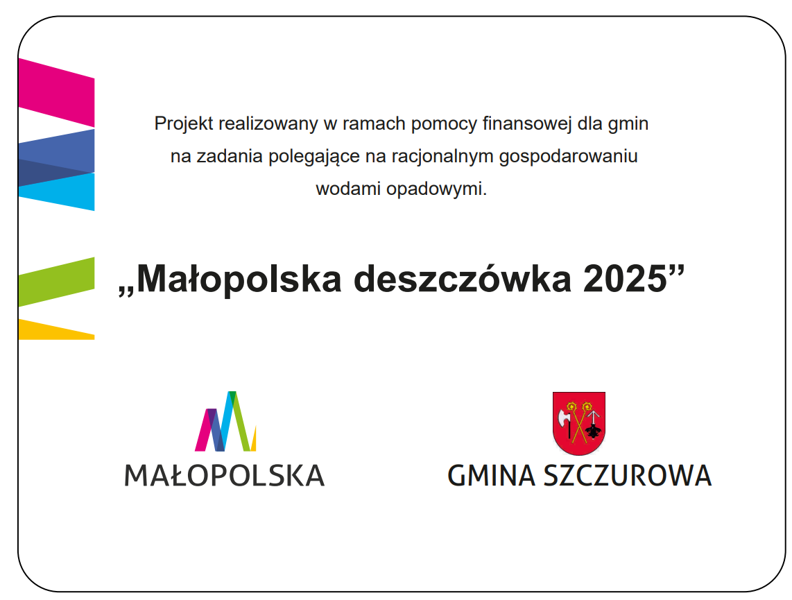 Gmina Szczurowa zakończyła realizację projektu pn. „Małopolska Deszczówka 2025” obejmujący zakup zbiorników do magazynowania wód deszczowych i roztopowych (szczelne zbiorniki retencyjne naziemne). Gmina Szczurowa na realizację zadania pozyskała od Samorządu Województwa Małopolskiego kwotę 25 000,00 zł.