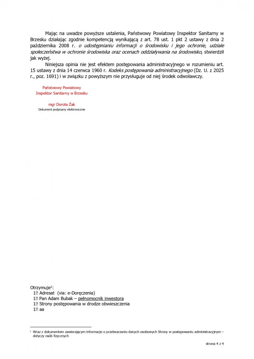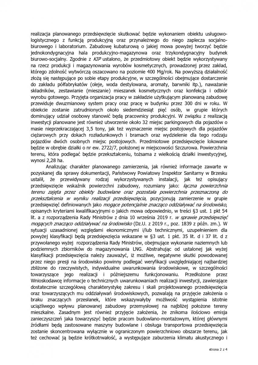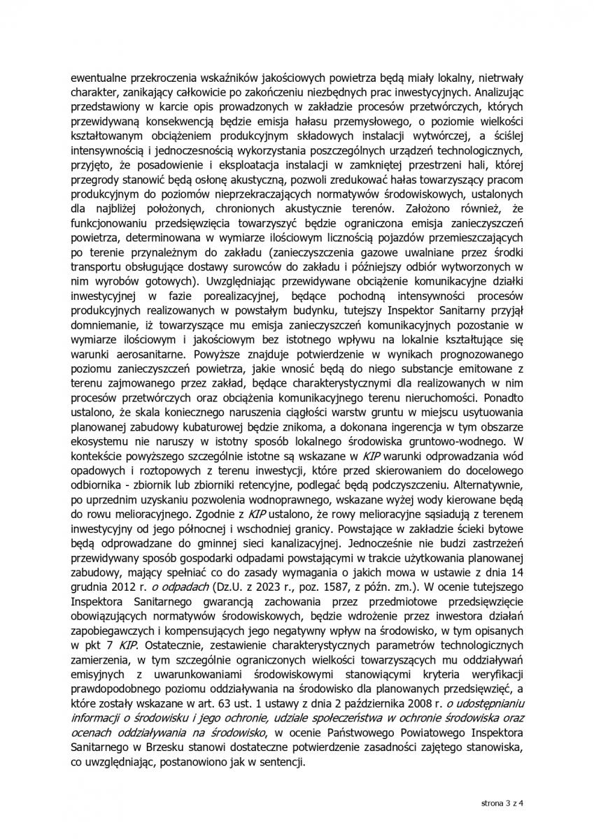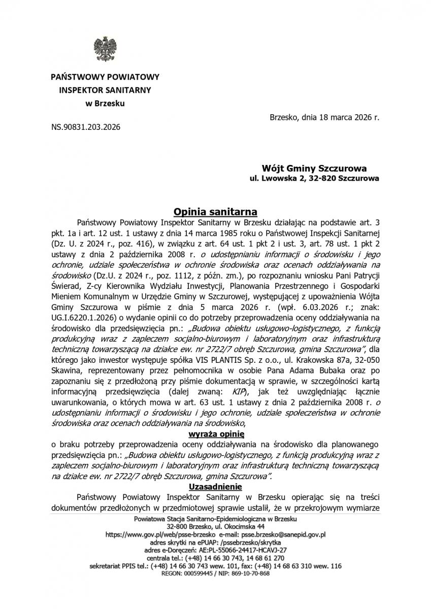Opinia sanitarna - „Budowa obiektu usługowo-logistycznego, z funkcją produkcyjną wraz z zapleczem socjalno-biurowym i laboratoryjnym oraz infrastrukturą techniczną towarzyszącą na działce ew. nr 2722/7 obręb Szczurowa, gmina Szczurowa