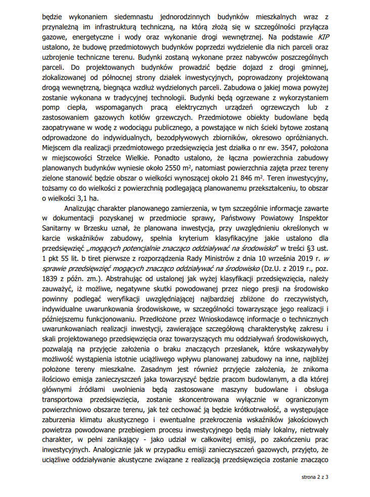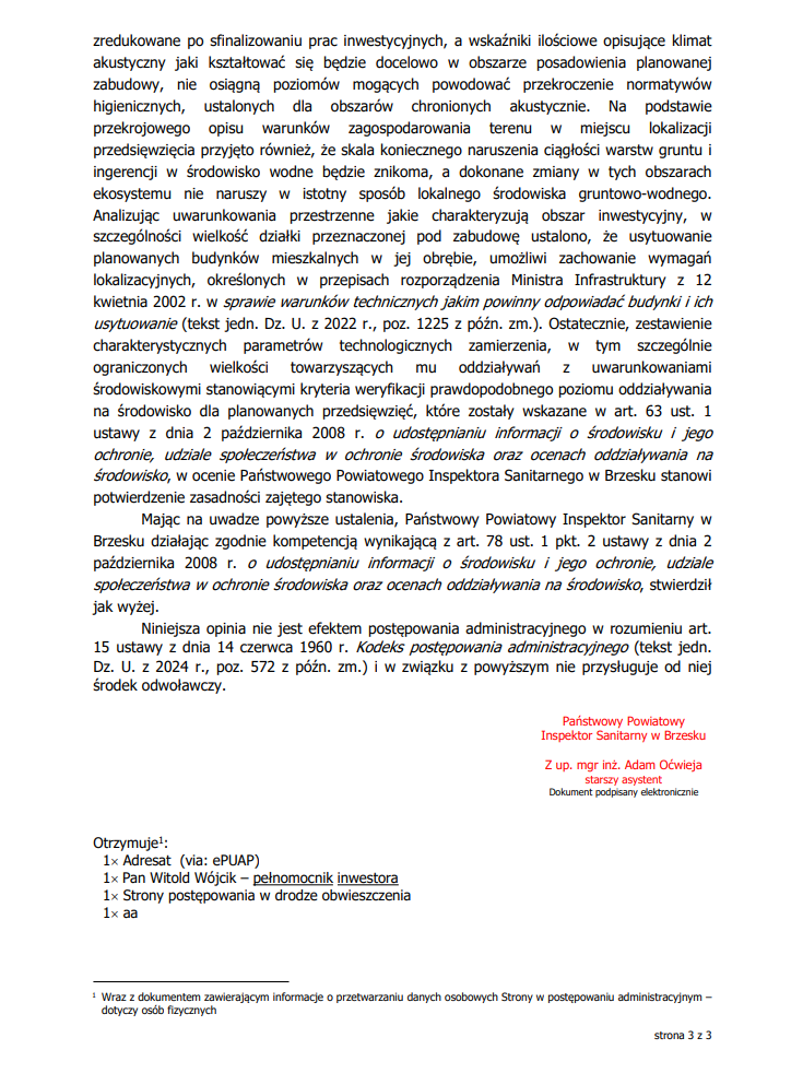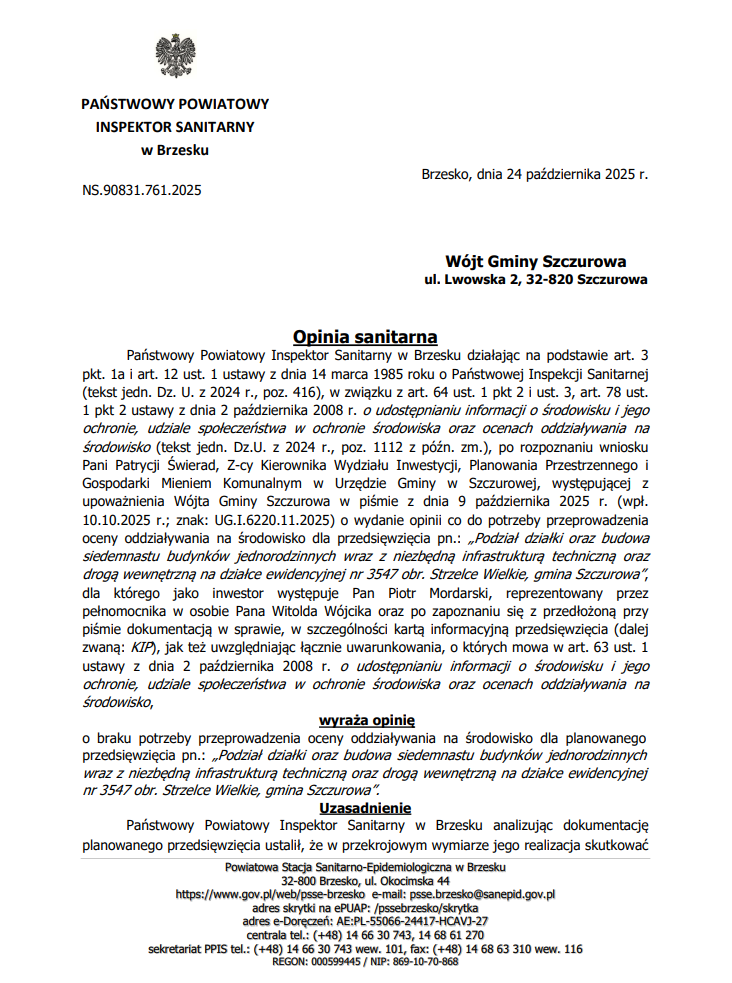 Opinia sanitarna Państwowego Powiatowego Inspektoratu Sanitarnego w Brzesku