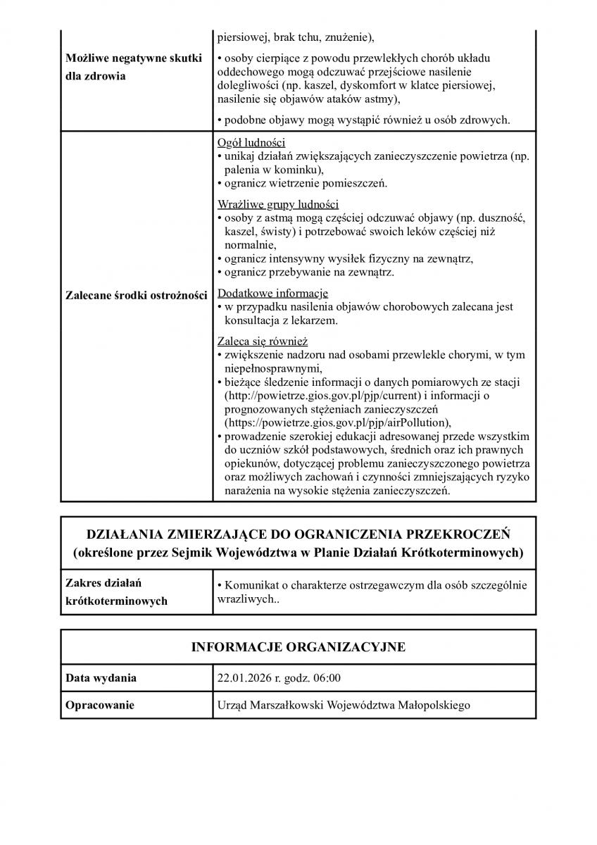 Powiadomienie o ryzyku wystąpienia przekroczenia średniodobowego poziomu dopuszczalnego dla pyłu zawieszonego PM10 w powietrzu
