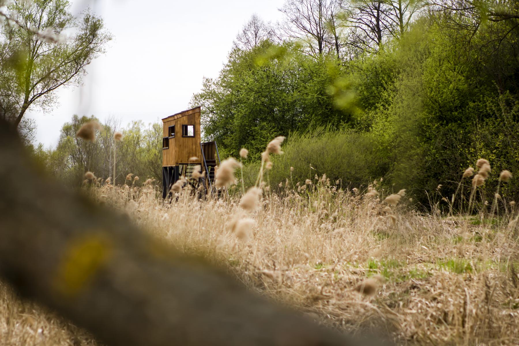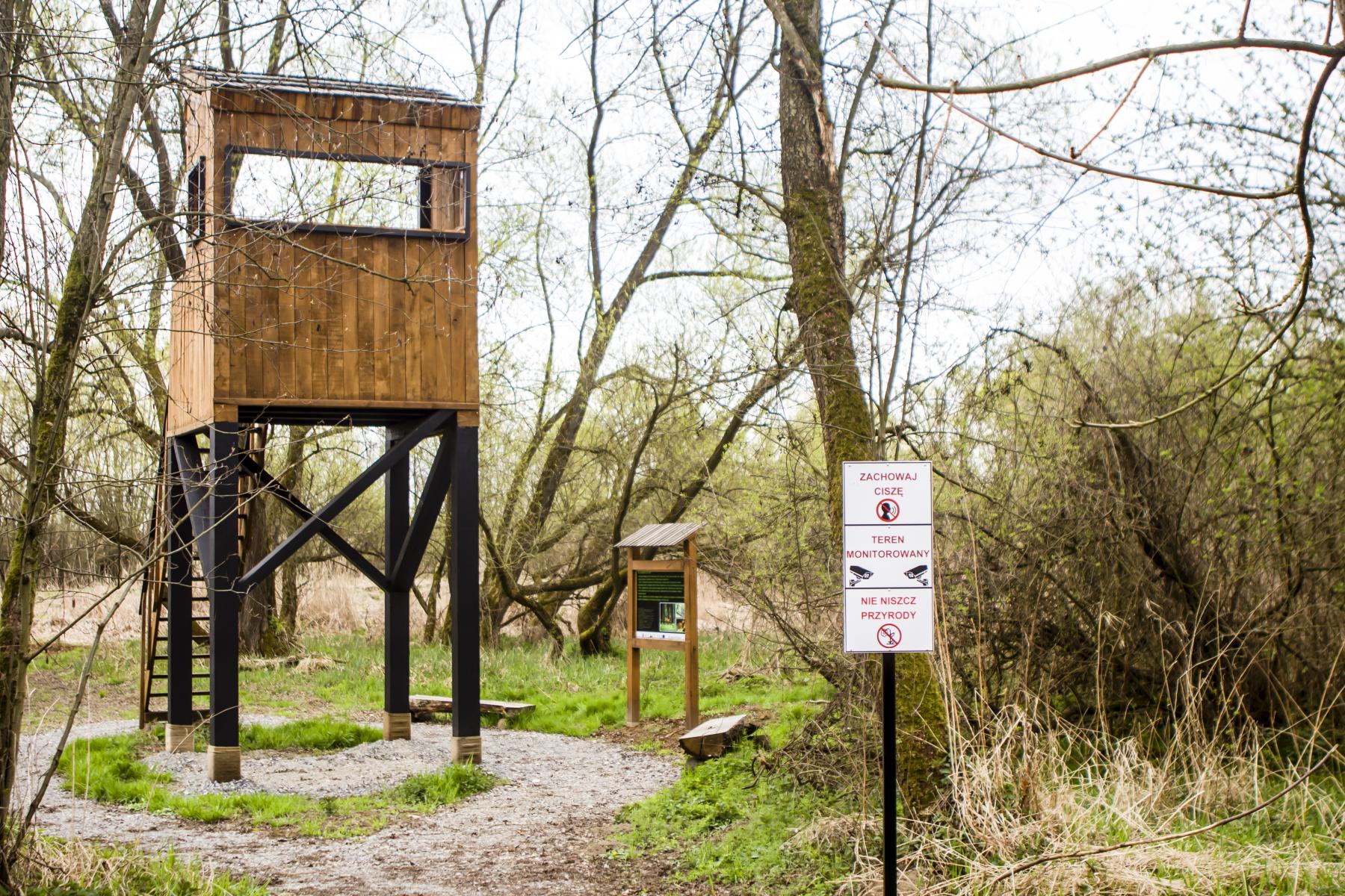 czatownie i ambony do obserwacji dzikiej fauny, w tym jedna wyposażona w lunetę,